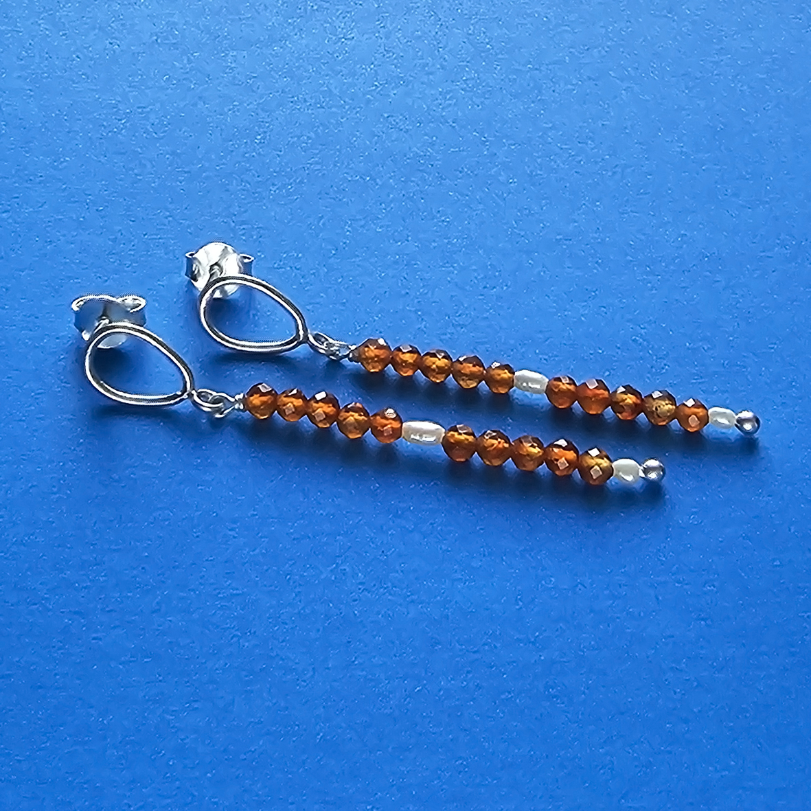 Brincos gota vazada com cornalinas e mini pérolas em prata. Delicadíssimo, e muito leve, par de brincos com uma das cores mais queridas no verão. Não resisto a trabalhar com laranja quando o verão se aproxima. Adoro! Medida 5,4 cm