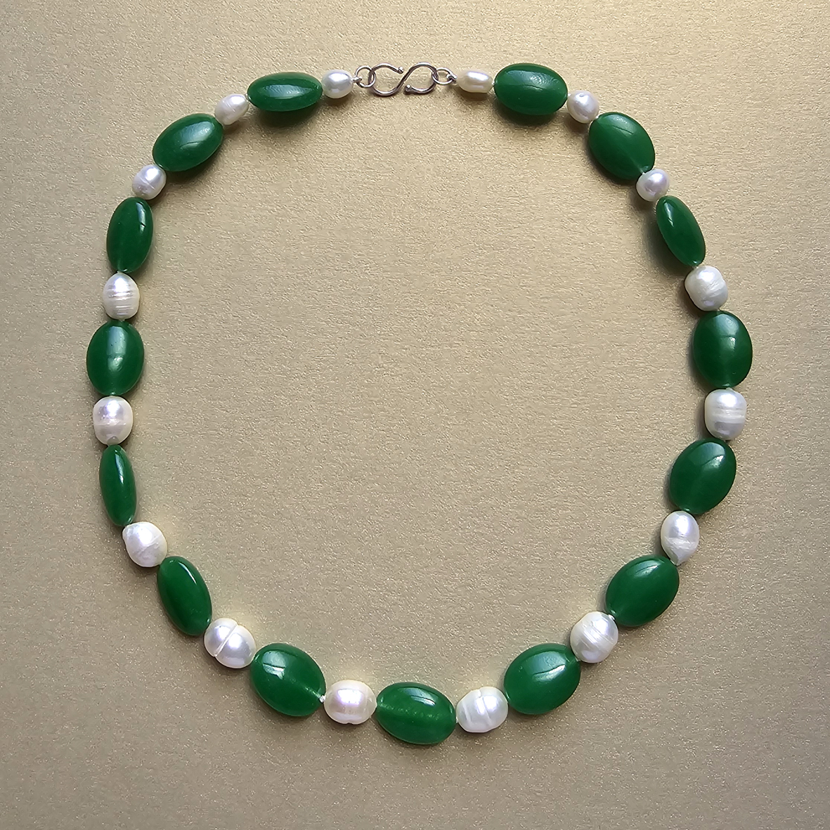 Colar com jade oval e pérola barroca em prata. Um colar curto, colorido e do jeitinho certo para ser uma produção super divertida ou só um toque de alegria numa produção mais básica. Para todas as estações. Medida – 46 cm