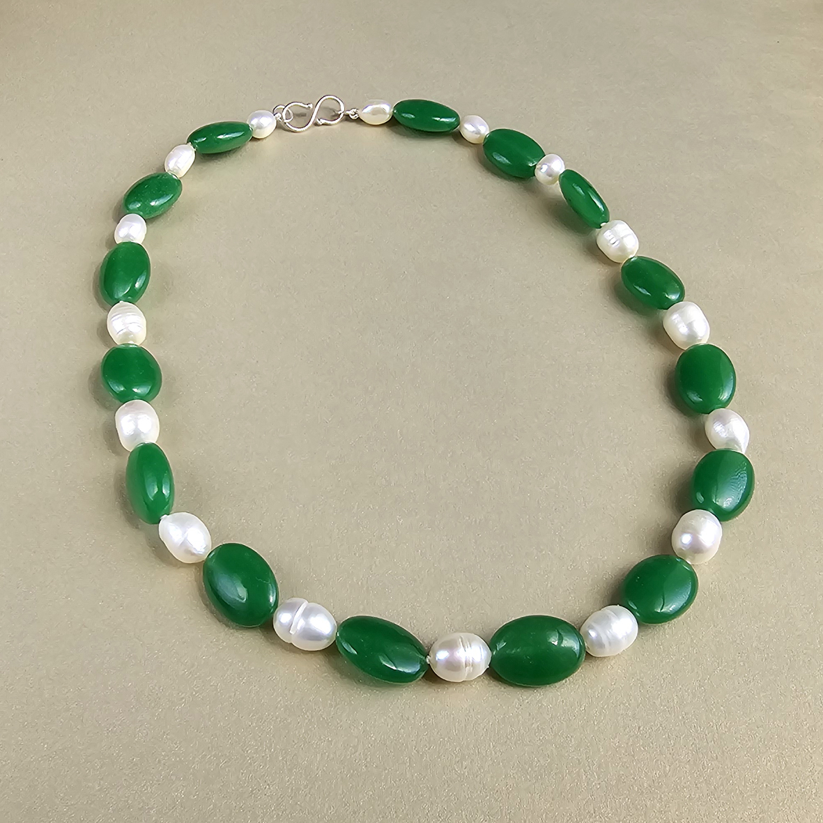 Colar com jade oval e pérola barroca em prata