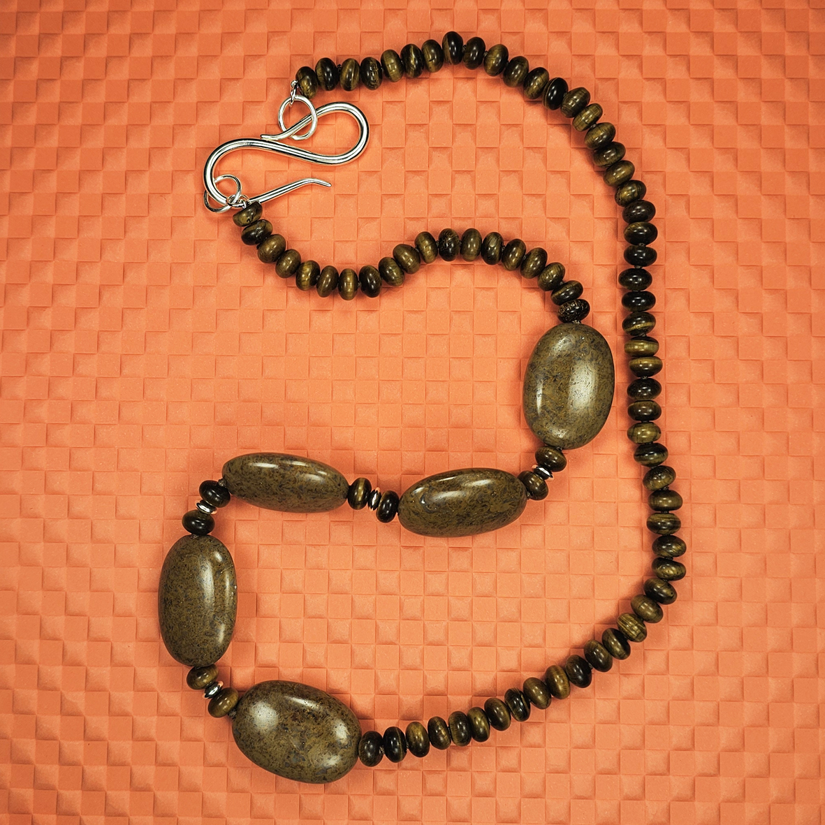 Colar com jaspe e olho-de-tigre em prata
