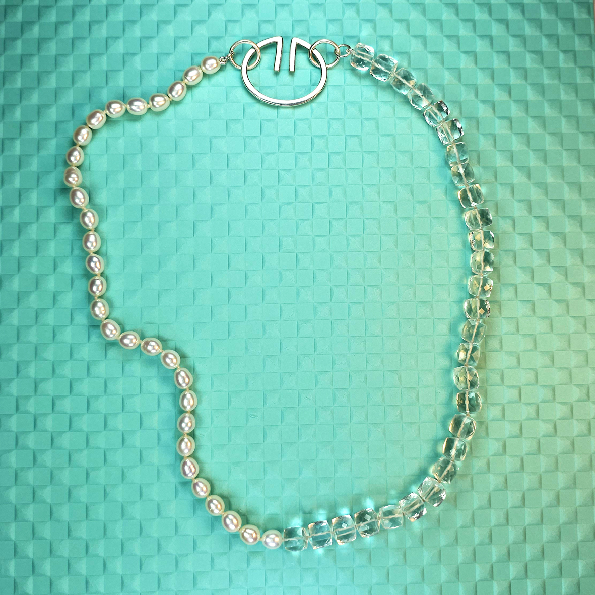 Colar com pérolas e quartzo em prata
