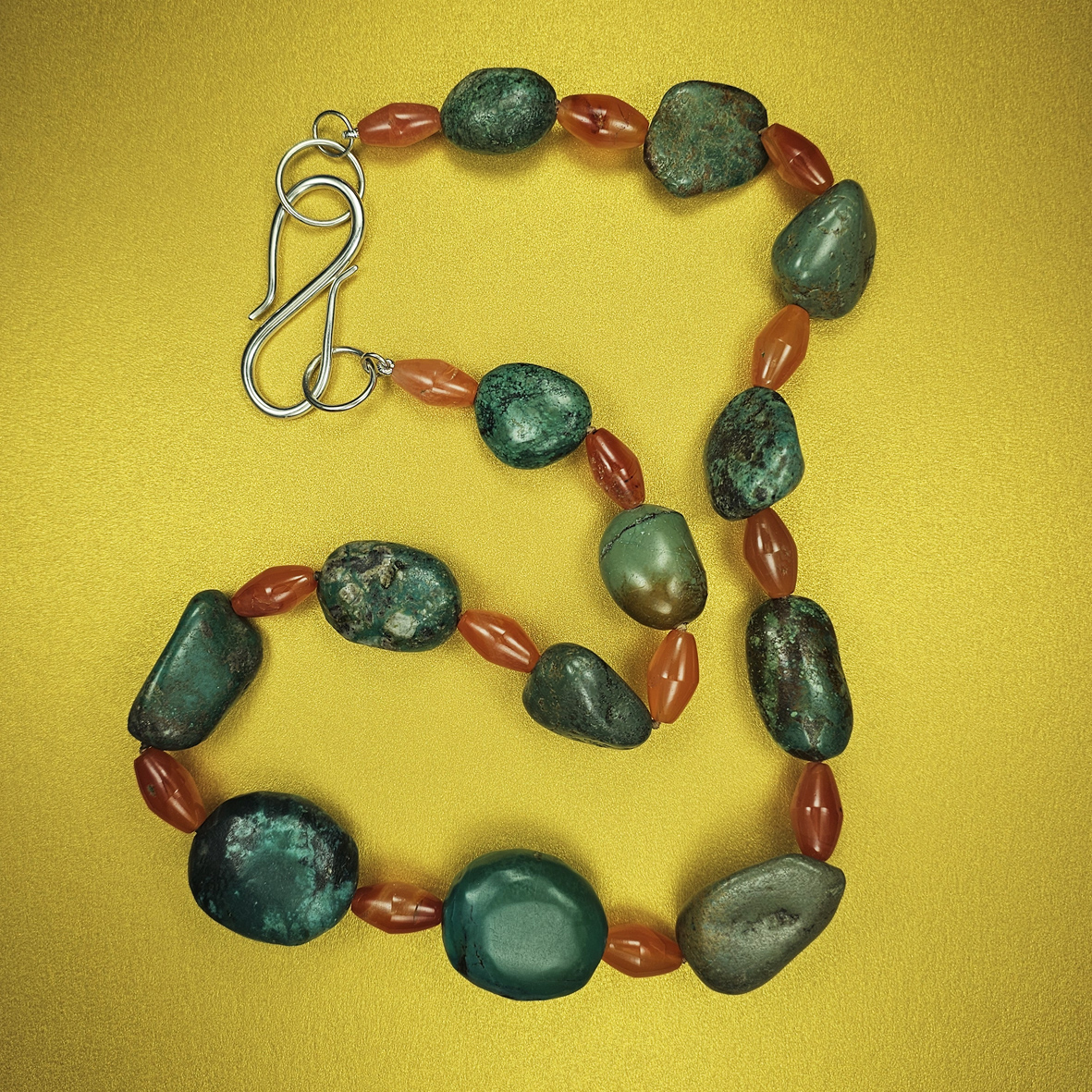 Colar com turquesas e cornalinas em prata