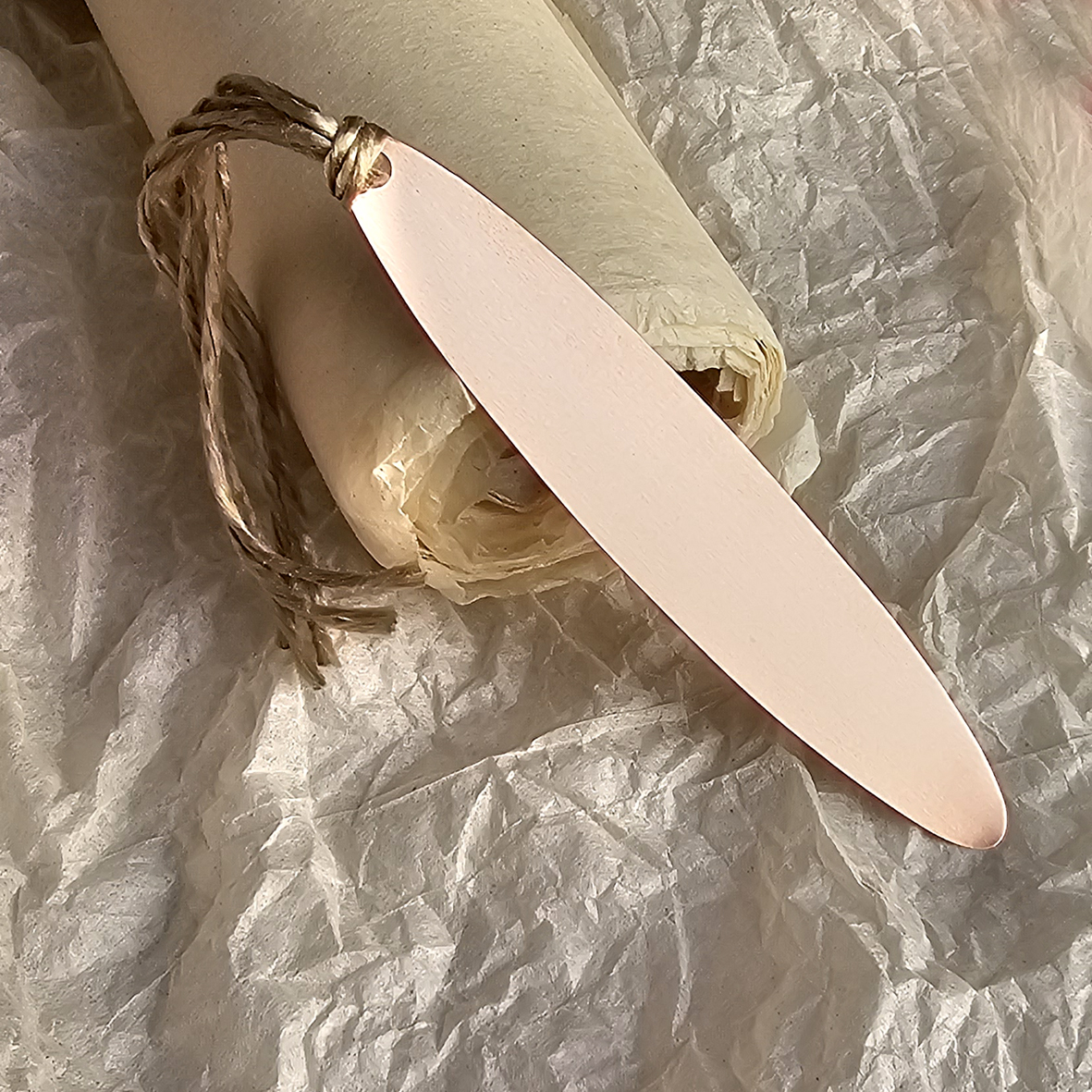 Marcador de livro retângulo curto em cobre e palha de seda