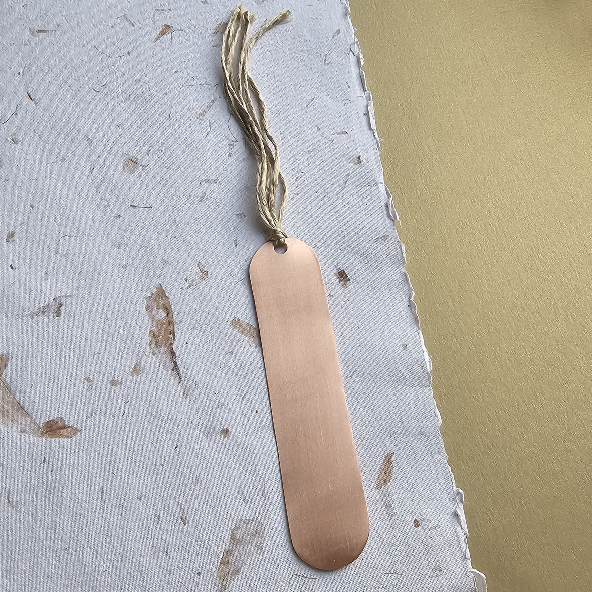 Marcador de livro retângulo arredondado em cobre e seda